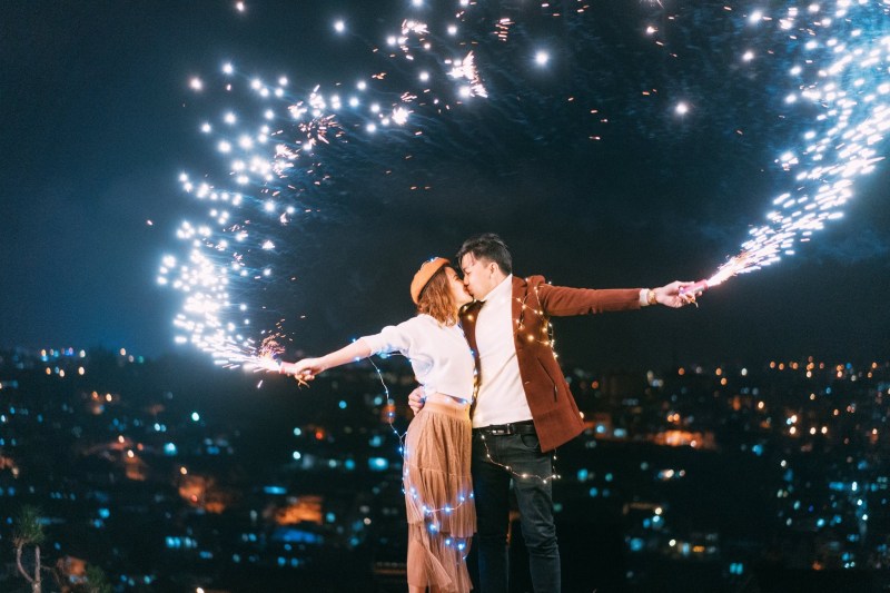 Thay vì sử dụng đèn led thì pháo bông hoặc nến là một gợi ý tuyệt vời bạn nhất định phải thử. Một đêm đầy ánh sáng, trong không gian lãng mạn và đong đầy cảm xúc chắc chắn không làm bạn thất vọng. Cách tạo dáng chụp ảnh ban đêm này rất phù hợp với những dịp đặc biệt như sinh nhật, Giáng sinh, ngày kỷ niệm,….