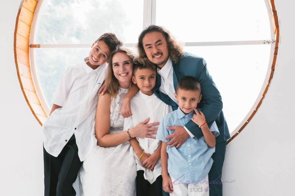 Với bức hình này là kiểu chụp cả nhà đứng cùng nhau, bố mẹ sẽ được ưu tiên đứng ở vị trí giữa và các con thì ở hai bên. Để thể hiện sự vững vàng và chắc chắn của tình yêu gia đình, đồng thời thần thái của mỗi thành viên được nổi bật.